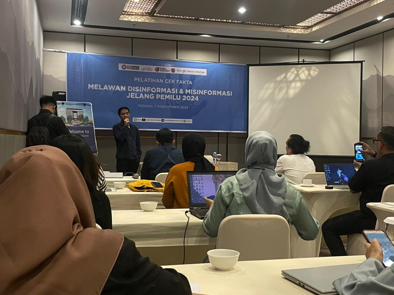 Di Hotel Santika Premiere Padang, bersama Koalisi Cek Fakta, Aliansi Jurnalis Independen, serta Google News Initiative, menggelar pelatihan cek fakta melawan disinformasi dan misinformasi jelang pemilu 2024 pada 7–9 November.