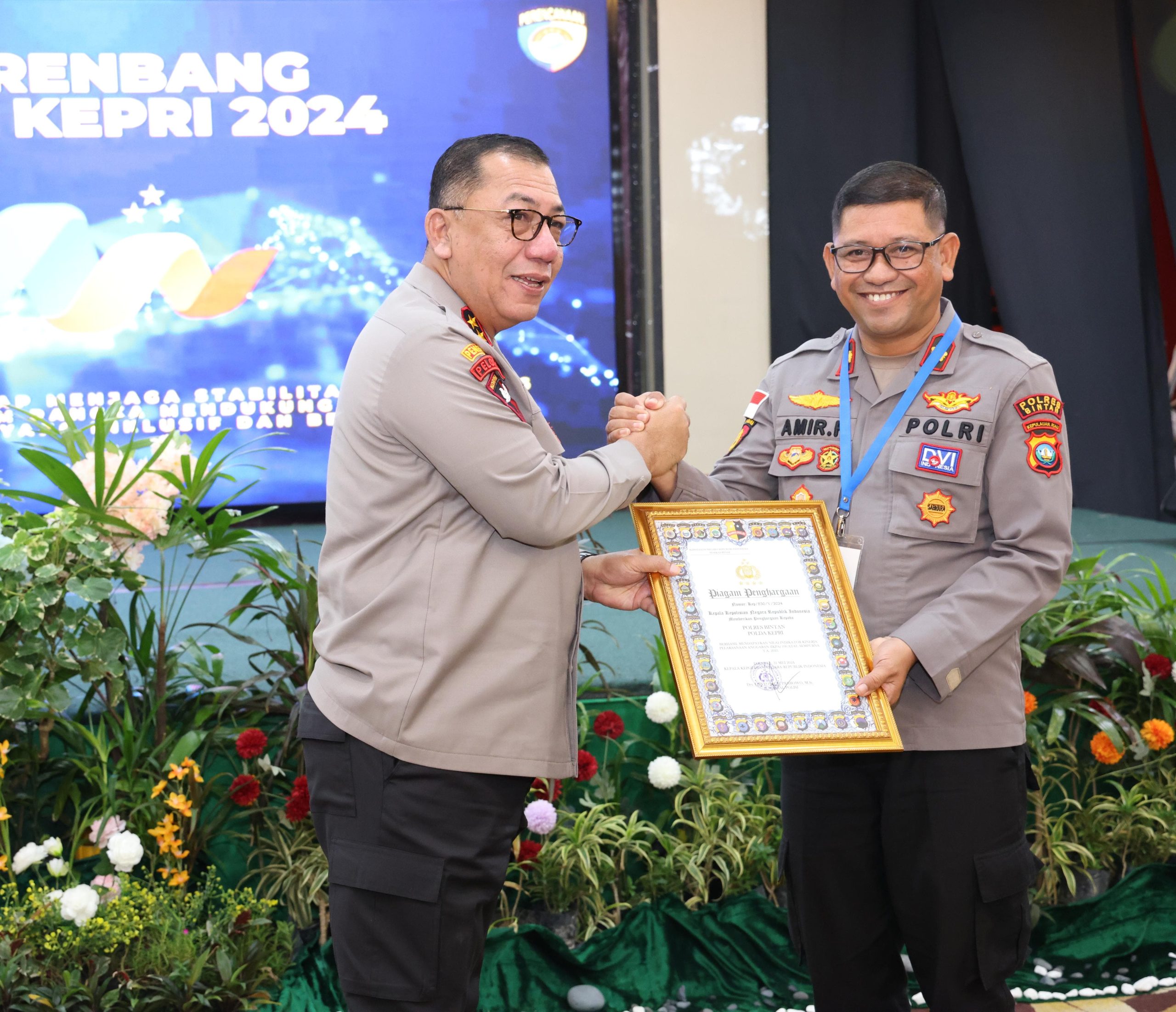 Penghargaan tersebut diserahkan langsung oleh Kapolda Kepri Irjen Pol. Yan Fitri Halimansyah, kepada Kapolres Bintan AKBP Riky Iswoyo, yang diterima oleh Wakapolres Bintan Kompol Amir Hamzah, pada acara Musrenbang Polda Kepri Tahun 2024.